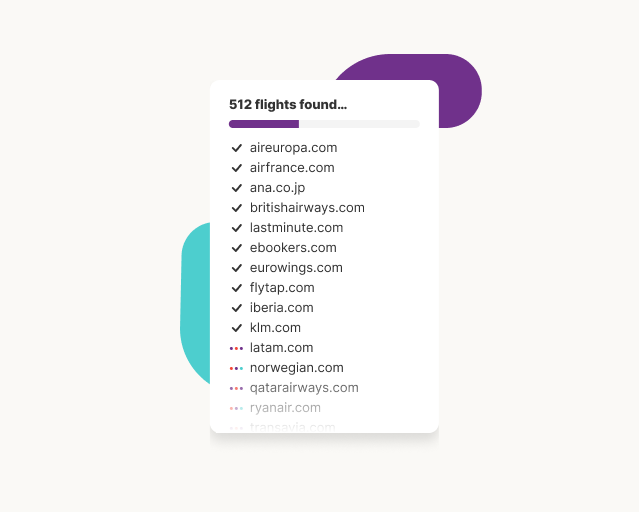 When searching on Trabber, our search engine connects directly to the websites of airlines, travel agencies, hotel chains, car rental companies and train reservation companies, to extract all of their results.